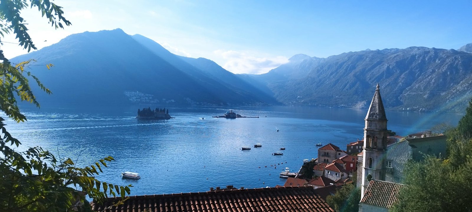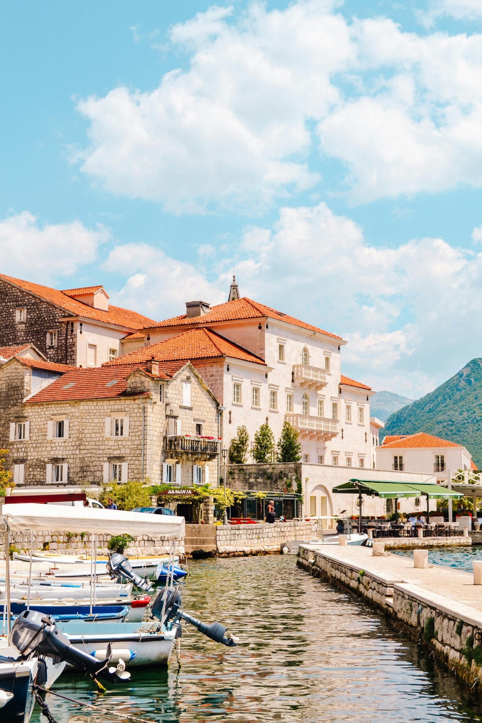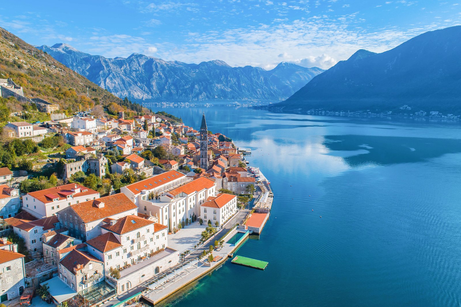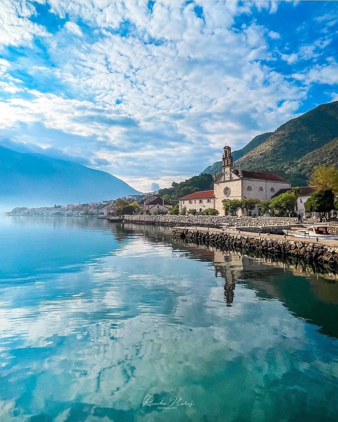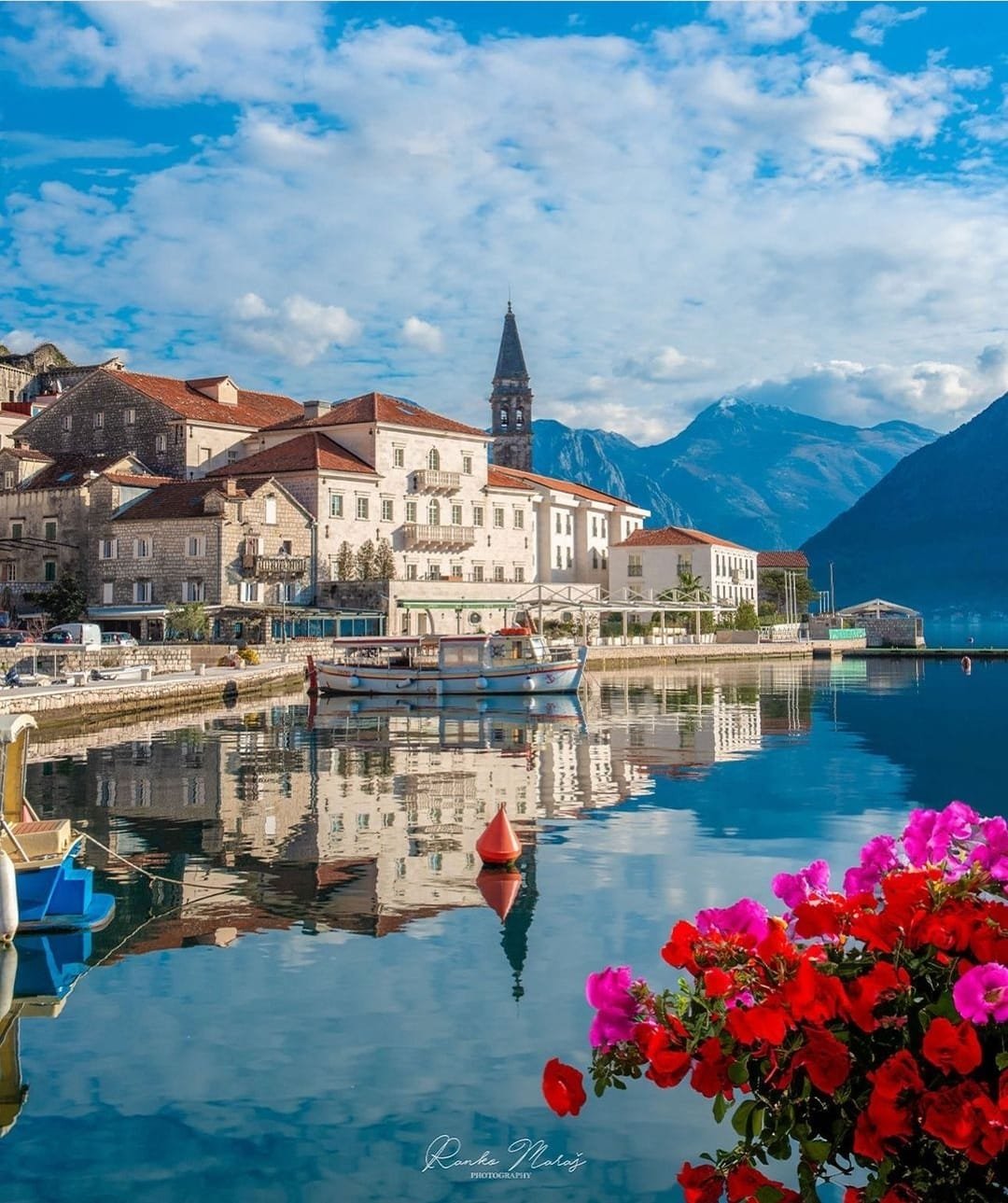 Tranquil promenade and crystal-clear waters in the charming town of Perast, Montenegro