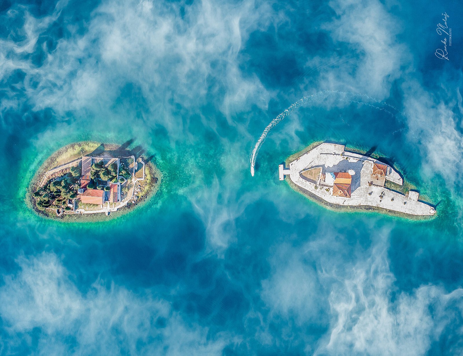 Majestic view of St. George Island and Our Lady of the Rocks in Perast, Montenegro
